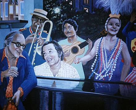 Antonio Carlos Jobim, Vinicius de Moraes and friends. Detail of a mural painted at a bar in Ipanema, Rio de Janeiro, Brazil.