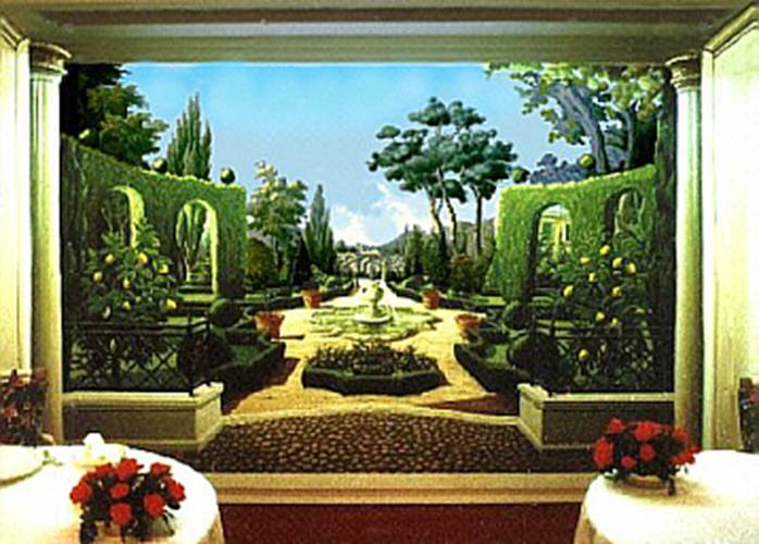 Italian garden scene, painted at the Hotel Lord Byron, Rome, Italy. 4x3m