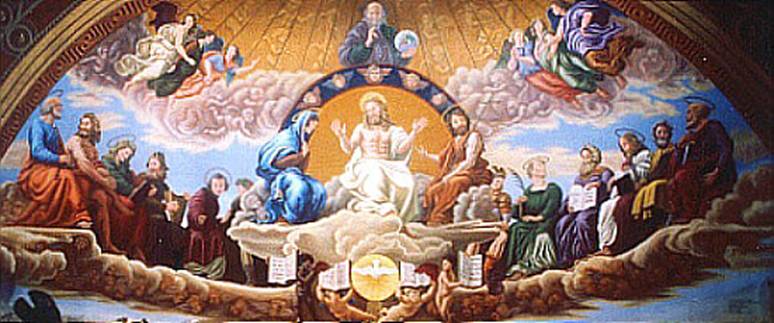 Dispute over the Sacrament – a homage to Raphael - painted at a Brazilian plantation house. 6x2.5m